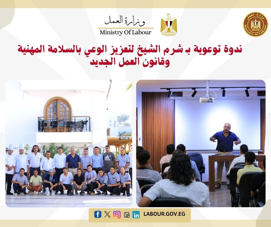 ندوة توعوية بـ شرم الشيخ لتعزيز الوعي بالسلامة المهنية وقانون العمل الجديد