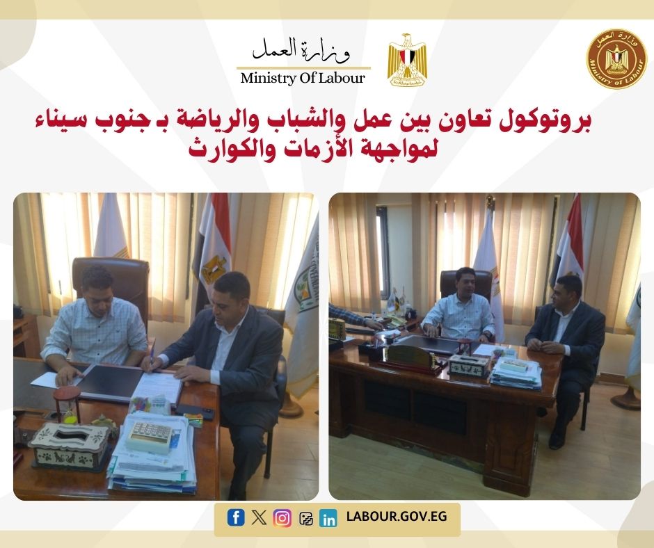 بروتوكول تعاون بين عمل والشباب والرياضة بـ جنوب سيناء لمواجهة الأزمات والكوارث