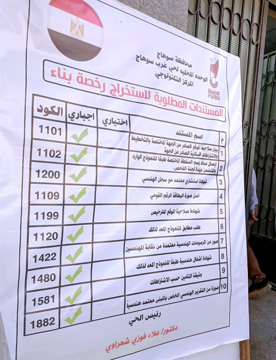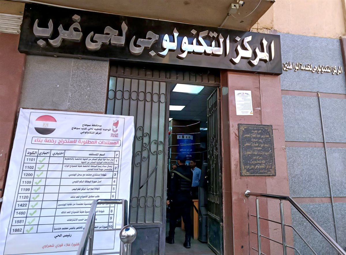 كما تفقد المحافظ المركز التكنولوجي بحي غرب سوهاج، واطمأن على انتظام العمل به، وتأكد من تنفيذ توجيهاته السابقة بوضع لوحة إرشادية موضح بها جميع المستندات المطلوبة للحصول على تراخيص البناء، بما يسهم في تسهيل الإجراءات على المواطنين ومنع أي تلاعب.