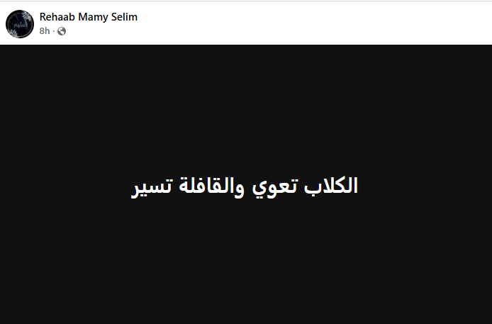 خرجت رحاب طليقة الفنان الراحل سعيد مختار عن صمتها، لترد على جميع الأنباء المنتشرة حول قتلها لطليقها الفنان الراحل بعبارة مقتضبة عبر حسابها الرسمي على موقع التواصل الإجتماعي فيسبوك، وقالت: “الكلاب تعوي، والقافلة تسير”.