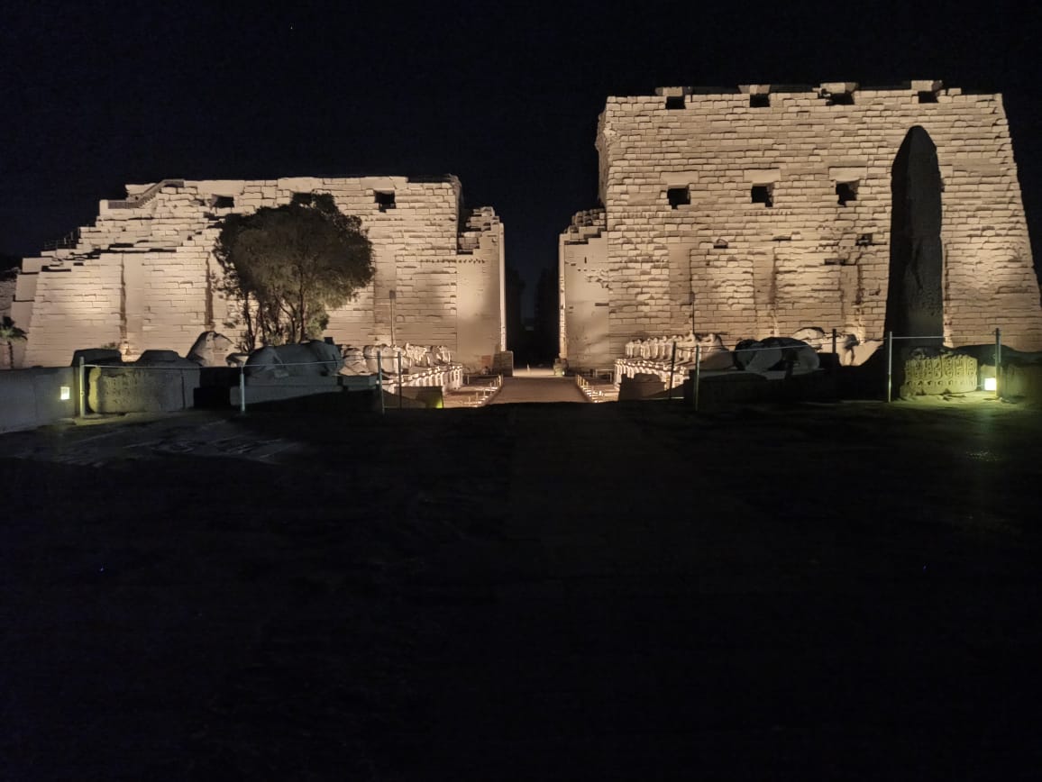 احتفلت محافظة الأقصر بعيدها القومي هذا العام بلوحة فنية مبهرة على واجهة معبد الكرنك، حيث قامت شركة مصر للصوت والضوء والتنمية السياحية بإضاءة الواجهة الرئيسية للمعبد بمجموعة من المؤثرات الضوئية التي أبرزت ملامحه الهندسية وتفاصيله التاريخية الفريدة، في مشهد خطف أنظار الحاضرين من المواطنين والسائحين.