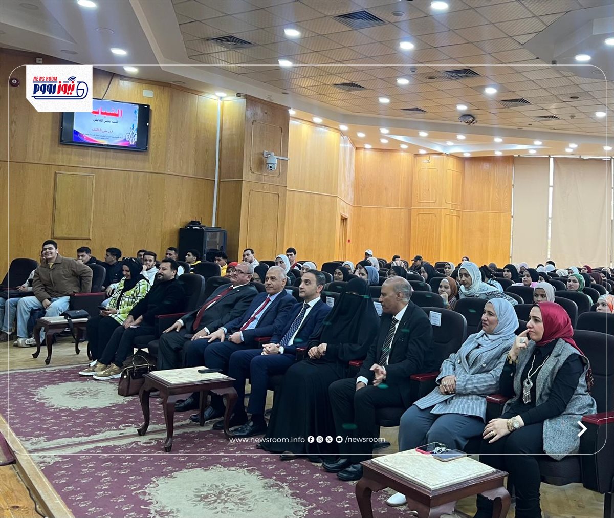 نظم مجمع إعلام الفيوم بالتعاون مع جامعة الفيوم قطاع خدمة المجتمع وتنمية البيئة لقاءً إعلاميًا بعنوان "الشباب قلب مصر النابض" بالمكتبة المركزية للجامعة وذلك في إطار حملة قطاع الإعلام الداخلي برعاية الكاتب الصحفي الدكتور ضياء رشوان رئيس الهيئة العامة للاستعلامات وتوجيهات الدكتور أحمد يحيى رئيس القطاع؛ للتأكيد على دور الشباب ومواجهة الشائعات، بحضور الدكتورة منى الخشاب عضو مجلس الشيوخ، والدكتور عاصم العيسوي نائب رئيس الجامعة لشئون خدمة المجتمع وتنمية البيئة، والدكتور شريف العطار نائب رئيس الجامعة لشئون التعليم والطلاب، ومحمد هاشم، مدير مجمع إعلام الفيوم، ومروة إيهاب أبوصميدة مسئول الإعلام السكاني بالمجمع، وعبد الناصر بكري مدير عام الإدارة العامة لقطاع خدمة المجتمع وتنمية البيئة وعدد من أعضاء هيئة التدريس والطلاب.