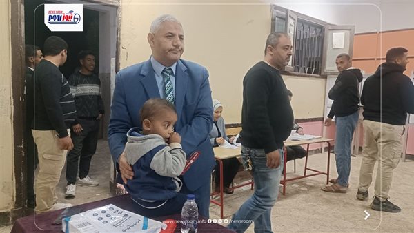 موقف إنساني.. رئيس لجنة في الفيوم يحمل طفل ناخب ليمكن والده من الانتخاب