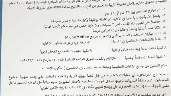 تعليم قنا: فتح باب الترشح لمبادرة "إعداد ألف معلم ليصبحوا مديري مدارس"