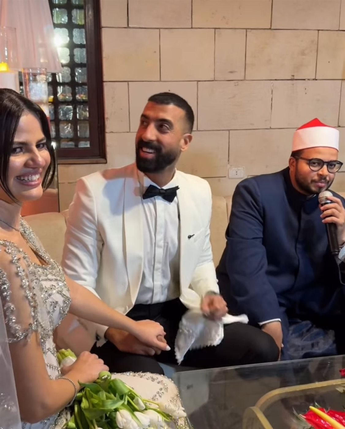 ارتدى العروسين إطلالات أنيقة وناعمة أبرزهت جمالهم وشياكتهم.