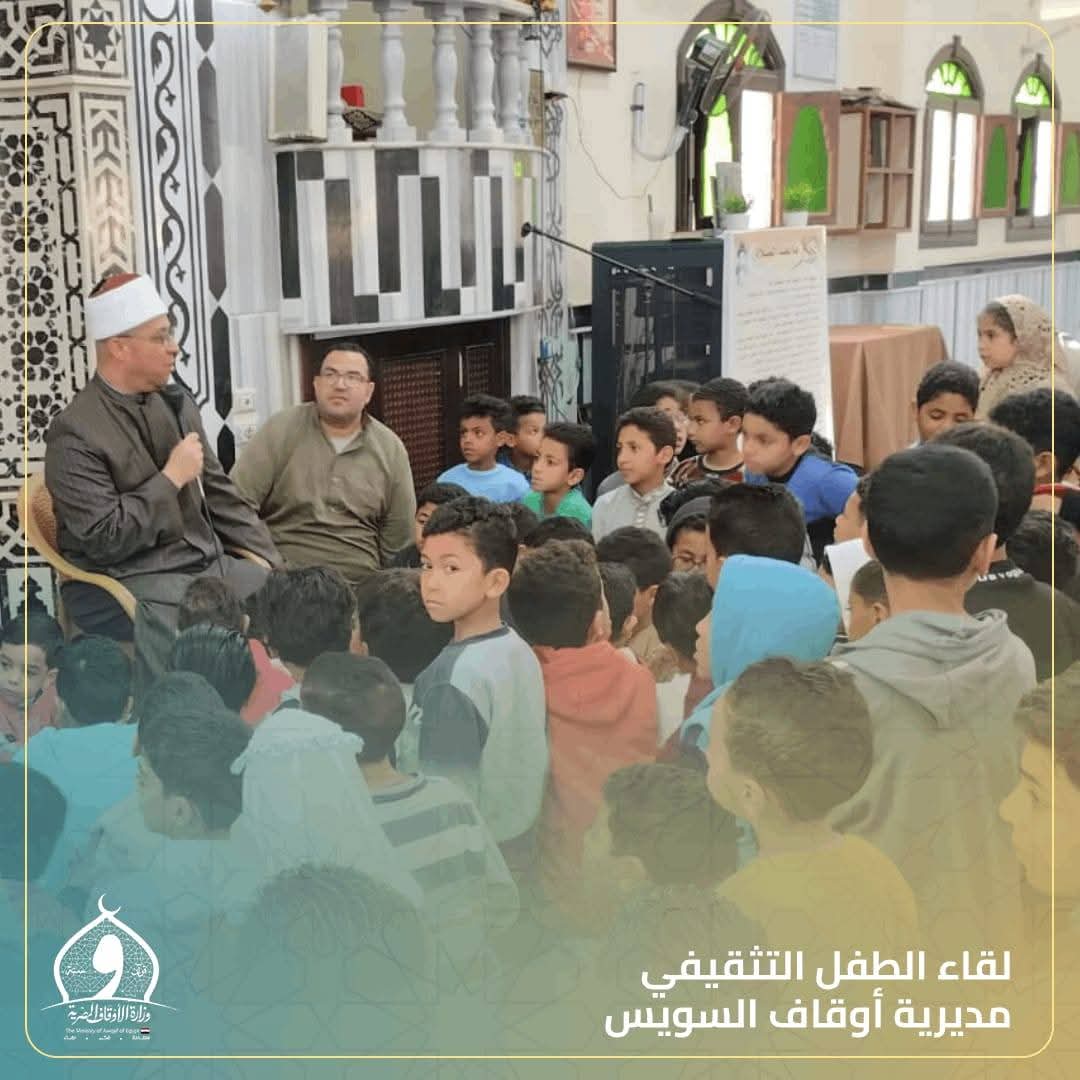 نظمت مديرية أوقاف السويس لقاء الطفل وذلك في إطار جهود وزارة الأوقاف للاهتمام بالنشء وتعميق الوعي الديني والثقافي لديهم، تم عقد "لقاء الطفل" مباشرة عقب صلاة الجمعة.