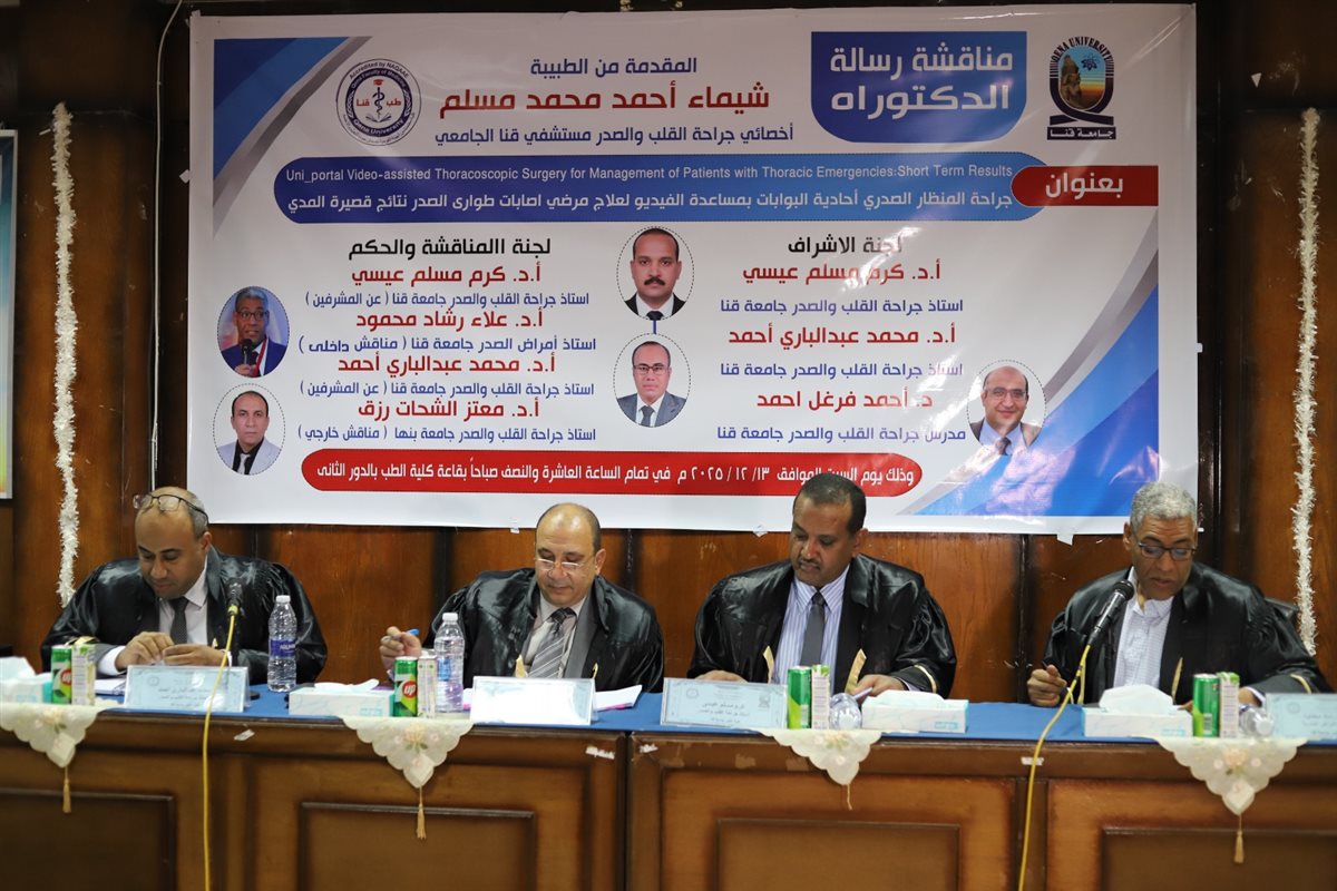 جامعة قنا تناقش رسالة دكتوراه للباحثة شيماء مسلم حول جراحة منظار الصدر