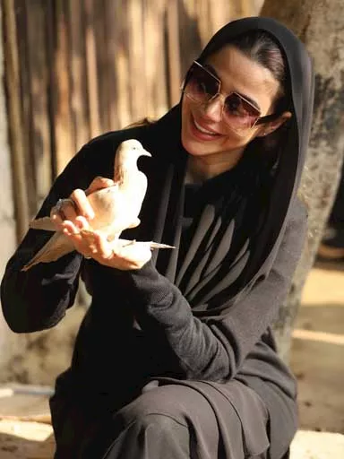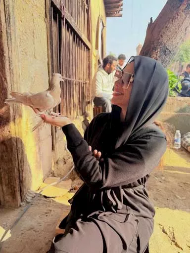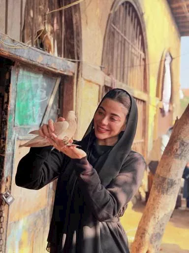 بالحجاب الأسود.. يارا السكري تداعب الحمام في أحدث جلسة تصوير