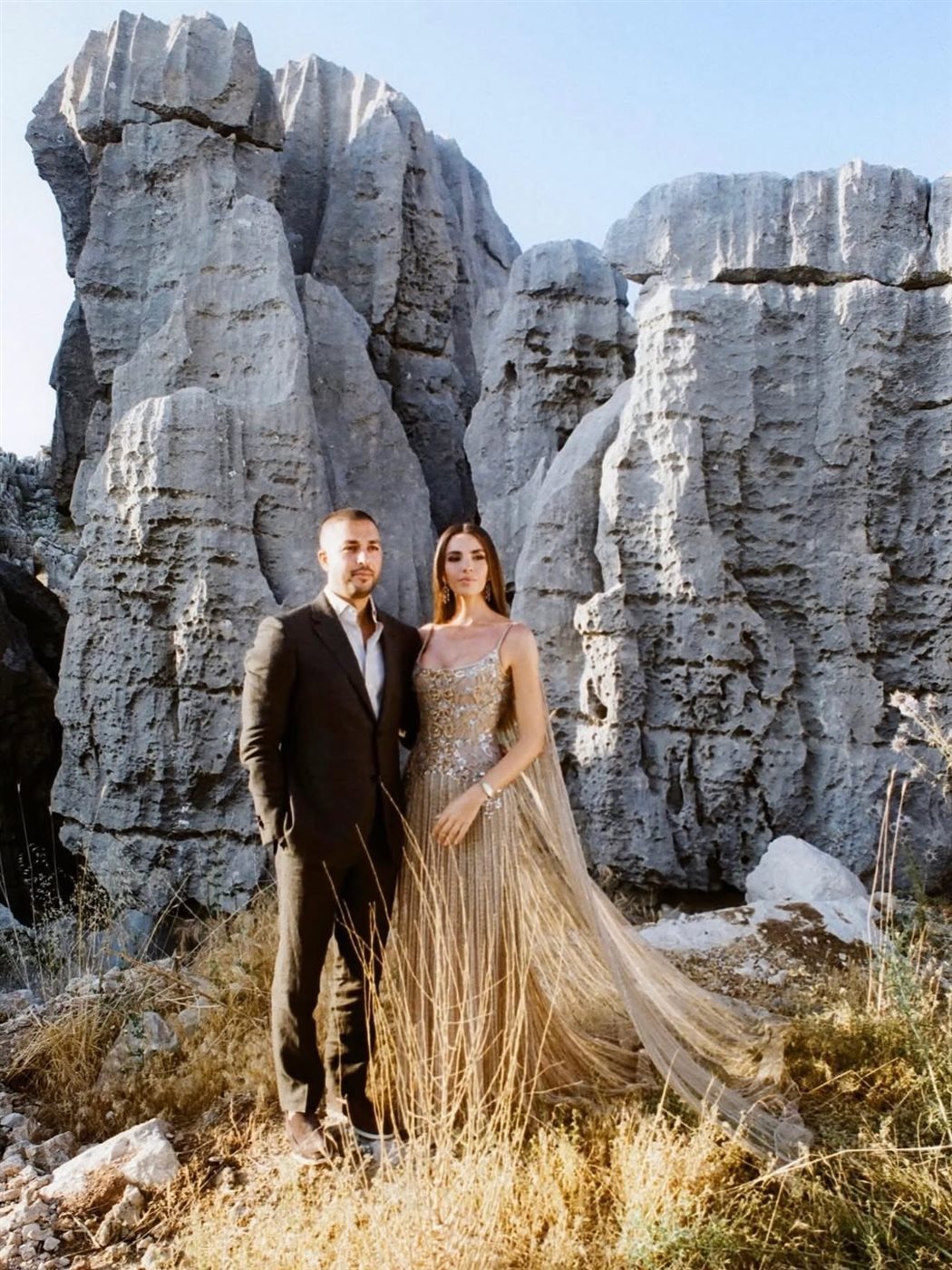 زين بفستان ملكي.. وسيليو بإطلالة كلاسيكية راقية