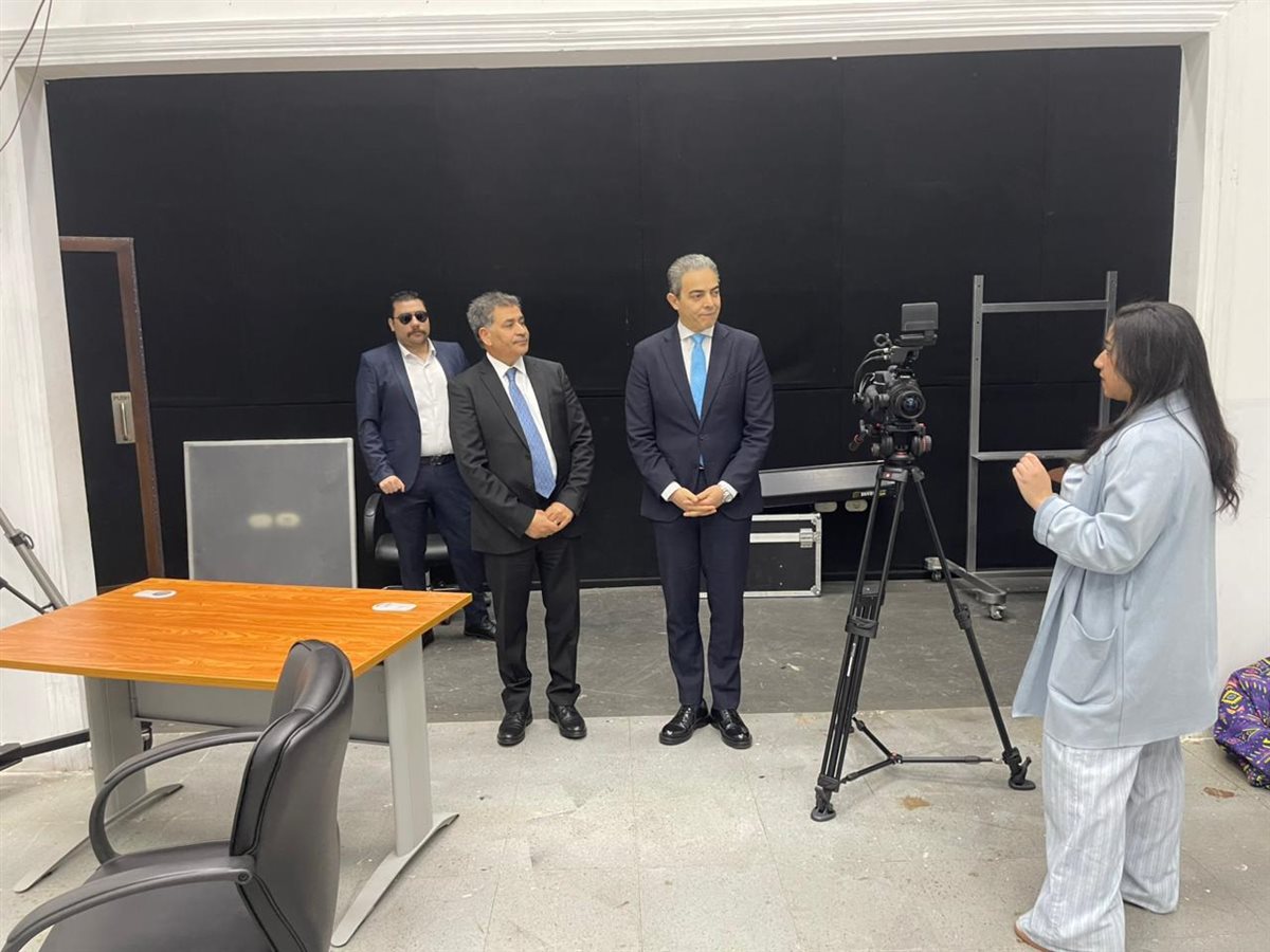 وعقب انتهاء الاجتماع، اصطحب الدكتور عادل صالح، نقيب الإعلاميين، في جولة تفقدية شملت الاستوديوهات والبنية التحتية الإعلامية التي تمتلكها كلية الإعلام بالجامعة البريطانية، والتي تضم استوديوهات الإذاعة والتليفزيون والبودكاست، إلى جانب غرفة الأخبار المتخصصة.