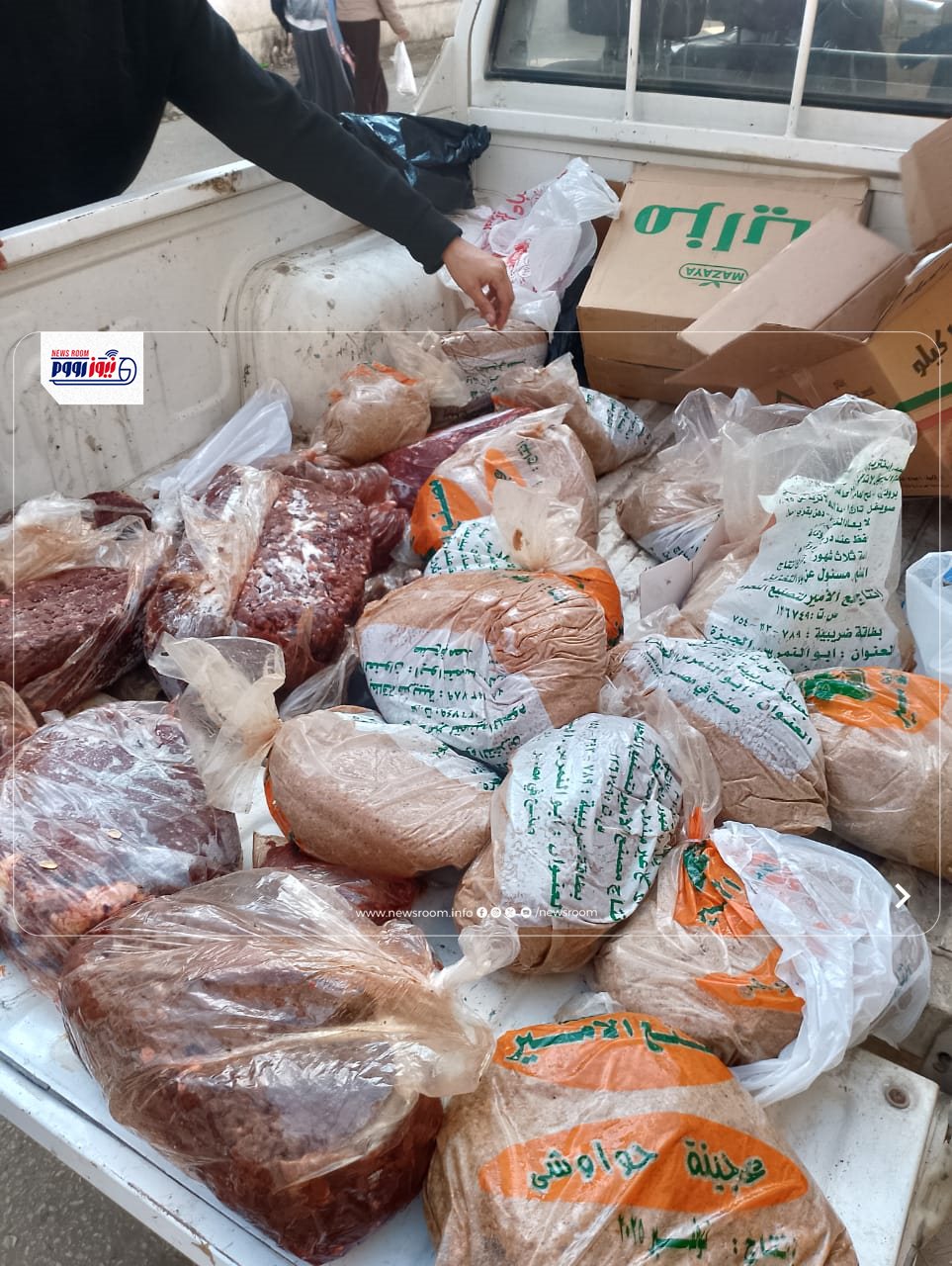 شنت مديرية التموين والتجارة الداخلية بمحافظة بالتنسيق مع الجهات المعنية وتحت إشراف كلا من المهندس جمعه عبد الحفيظ، وكيل وزارة التموين والتجارة الداخلية والأستاذة عبير العقبي، وكيل المديرية حملة مكبرة أسفرت عن ضبط 110 كيلو عجينة حوواشي ولحوم مفرومة فاسده وغير صالحه للاستهلاك الآدمى بأحد مطاعم .