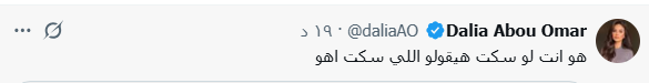 وقالت أبو عمر في تغريدة له عبر منصة إكس: هو أنت لو سكت هيقولوا اللي سكت أهو.