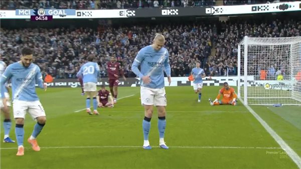 أحرز هالاند هدف مانشستر سيتي الثالث في المباراة والثاني له بعد تمريرة عرضية فشل الدفاع في ابعاد الكرة وسددها هالاند من داخل منطقة الجزاء وتهز الكرة الشباك