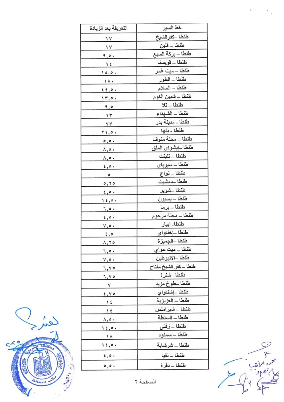 في استجابة سريعة لتحريك أسعار الوقود الصادر عن لجنة التسعير التلقائي للمنتجات البترولية، اعتمد اللواء أشرف الجندي محافظ الغربية، تعريفة الركوب الجديدة لكافة خطوط السير الداخلية والخارجية بالمحافظة.