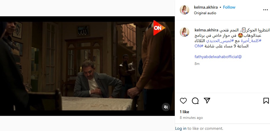 وجاء في الإعلان، الذي نُشر عبر الحساب الرسمي للبرنامج على منصة إنستجرام:“انتظروا الجوكر.. النجم فتحي عبدالوهاب في حوار خاص في برنامج كلمة أخيرة مع لميس الحديدي، الثلاثاء الساعة 9 مساءً على شاشة ON.”
