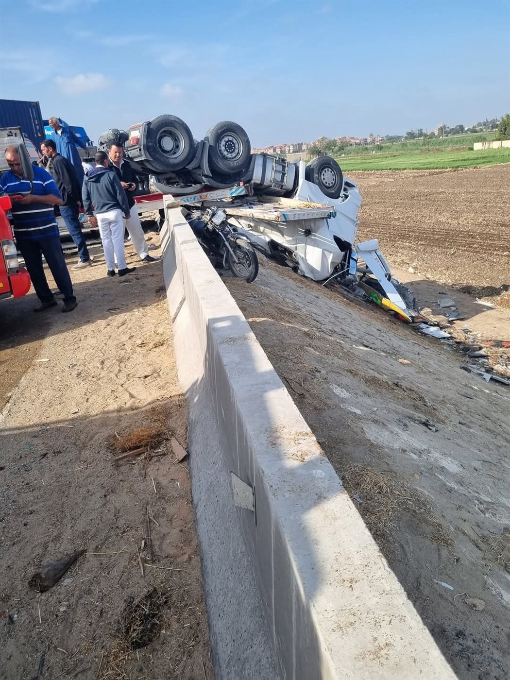 إصابة ثلاثة أشخاص فى تصادم سيارة ميكروباص بتريلا باقليمي المنوفية