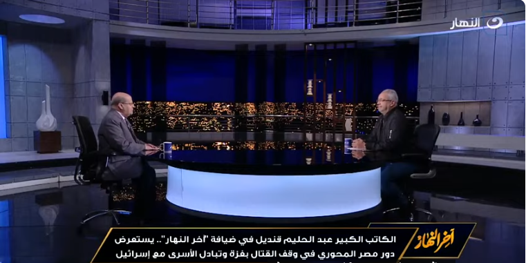 وأشار «قنديل» خلال حوار تلفزيوني ببرنامج «آخر النهار» والمذاع عبر فضائية «النهار» أن مثل هذا المشهد تم مشاهدته مرارا وتكرارا في طرد الفلسطينيين من خارج أراضيهم المقدس، وإنما في عودة الفلسطينيين إلى أراضيهم المقدسة هذا هو المشهد الأول من نوعه منذ قرابة 80 عاما.