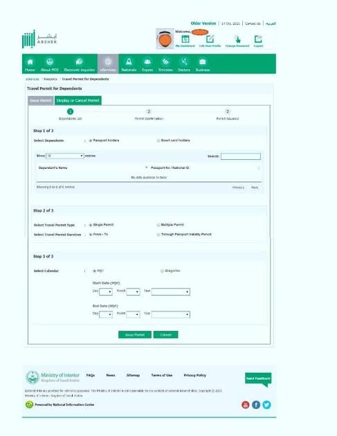 وتشترط المملكة العربية السعودية استخراج تصريح عمل للخروج النهائي من المملكة ويمن الحصول عليه عبر المنصة الوطنية الموحدة بالمملكة باتباع الخطوات التالية: