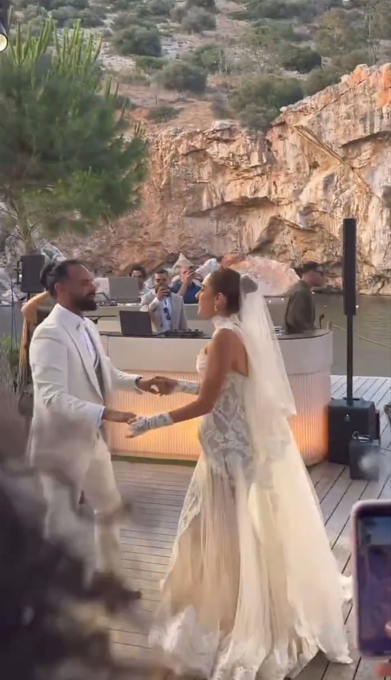 رقصة رومانسية لـ أمينة خليل وزوجها من حفل زفافهما باليونان | صور
