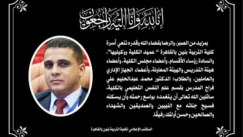«تربية الأزهر» تنعي الدكتور محمد عبدالحليم علي بقسم علم النفس التعليمي