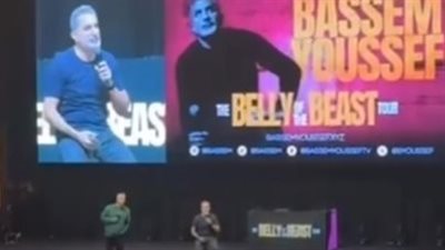 "خليها تروح وتجيلك حامل".. باسم يوسف يقنع والدة فتاة أردنية للسفر للجونة