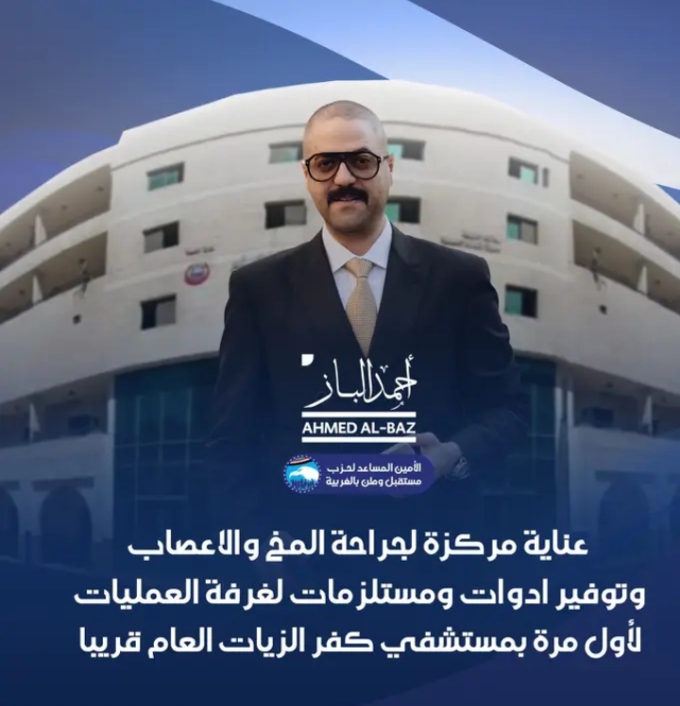 أحمد الباز يعلن استحداث قسم لجراحة المخ والأعصاب بمستشفى كفر الزيات