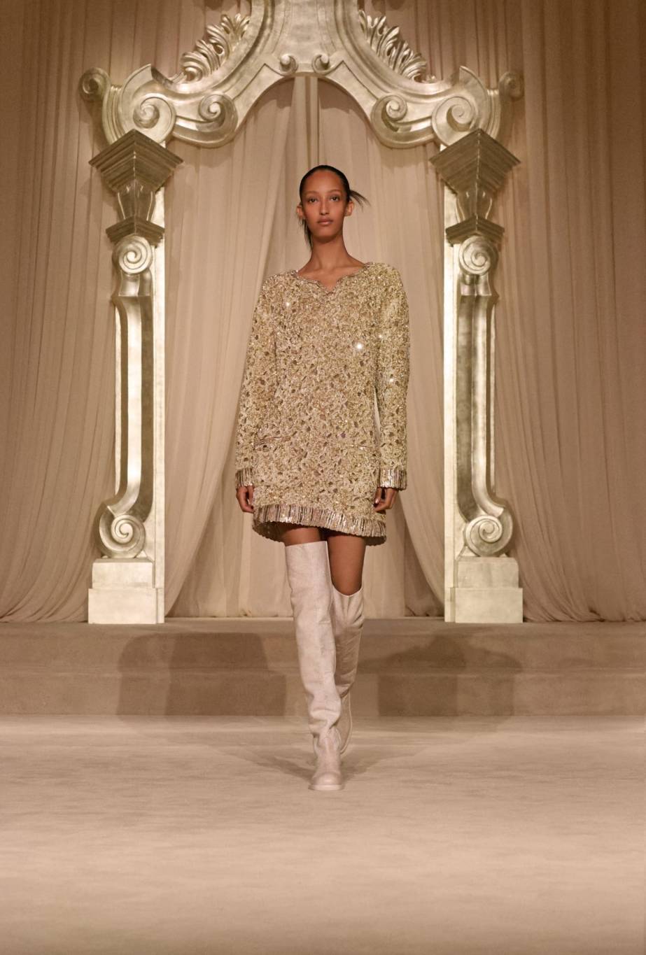 وفي عرض أزياء دار الأزياء الفرنسية شانيل Chanel بأسبوع باريس للهوت كوتور لموسم خريف وشتاء 2025-2026، حوّلت شانيل مساحةً في القصر الكبير إلى نسخةٍ مُلفتة من صالونات 31 شارع كامبون.