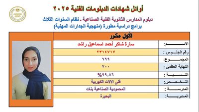 أُعلنت صباح اليوم الأحد نتائج امتحانات الدبلومات الفنية للدور الأول للعام الدراسي 2024/2025، وشهدت تفوقًا ملحوظًا لمدارس التكنولوجيا التطبيقية، حيث حققت نسب نجاح مرتفعة. وقد اعتمد السيد محمد عبد اللطيف، وزير التربية والتعليم والتعليم الفني، النتائج رسميًا.