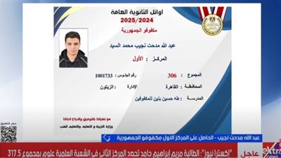 عبد الله هاني: «بفضل الله تحقّق المركز العاشر.. وأحلم بكلية الطب»