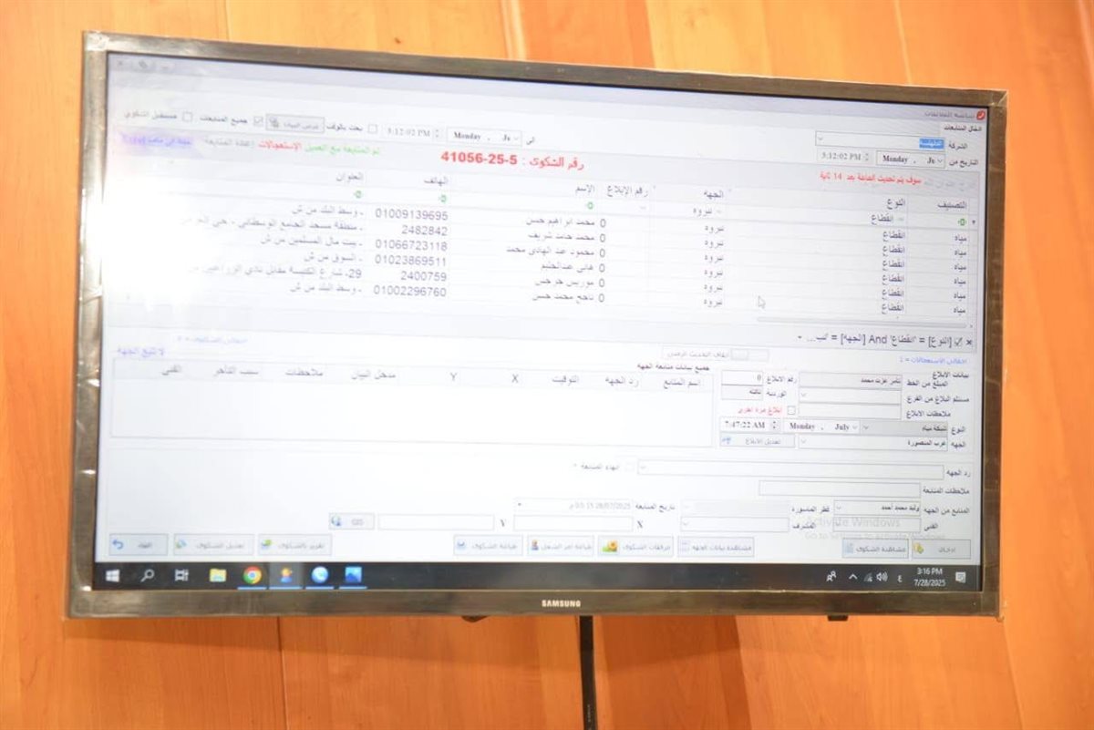 وخلال الزيارة، استمع المحافظ إلى شرح مفصل حول آلية عمل غرفة الخط الساخن، وكيفية استقبال شكاوى المواطنين المتعلقة بانقطاع المياه أو ضعف الضخ، والإجراءات المتبعة لمعالجة هذه البلاغات.