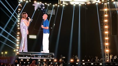 "بفضل الله ثم فضل الشعب السعودي، ثم صديقي وحبيبي، أجدد واحد في الدنيا (تركي آل الشيخ).. شكرًا على كل اللي قدمته لينا. وإذا كان فيه ردود أفعار مش على المستوى المطلوب، فده من العشم والإخوات بين بعضها. وأنا عارف قد إيه هو بيحب مصر وأهلها وفنانينها وعازفيها واحد واحد."