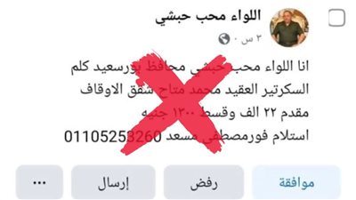 وتؤكد محافظة بورسعيد أن هذه الصفحة مزيفة ولا تمت للمحافظ أو المحافظة بأي صلة، وأن الجهة الوحيدة المنوطة بنشر الأخبار والبيانات الرسمية الخاصة بالمحافظة هي الصفحة الرسمية لمحافظة بورسعيد فقط.