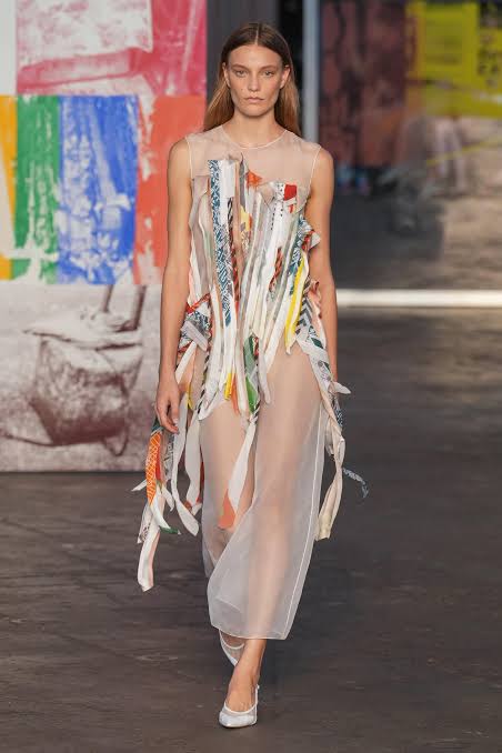 بدت الملابس كتركيباتٍ مُركّبة بعناية: تداخلت الأقمشة والصور المطبوعة، وتقشرت، وكشفت عن نفسها في تسلسلاتٍ تُحاكي النقل الفوتوغرافي وتجاور الأشياء المُكتشفة.