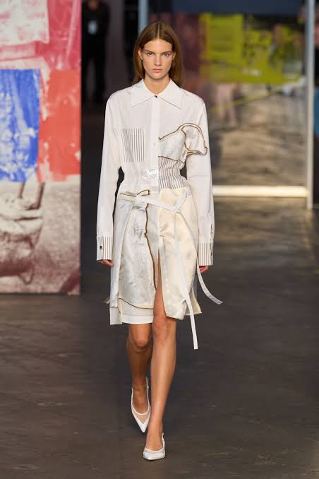 استوحت فساتين القمصان المُفصّلة من الملابس الرياضية الأمريكية من خلال تصميم الألواح المزرّرة والسهولة المُريحة، إلا أن هذه القطع الكلاسيكية تأثرت بعدم التناسق والدرزات الظاهرة التي تعاملت مع الدرزات كعناصر فعّالة بدلًا من كونها مجرد لمسات نهائية.
