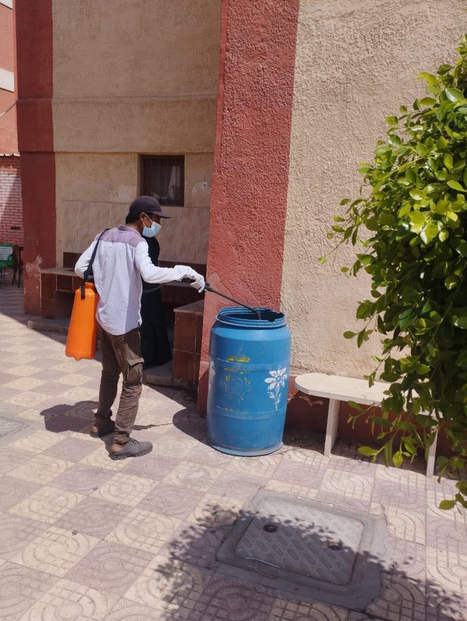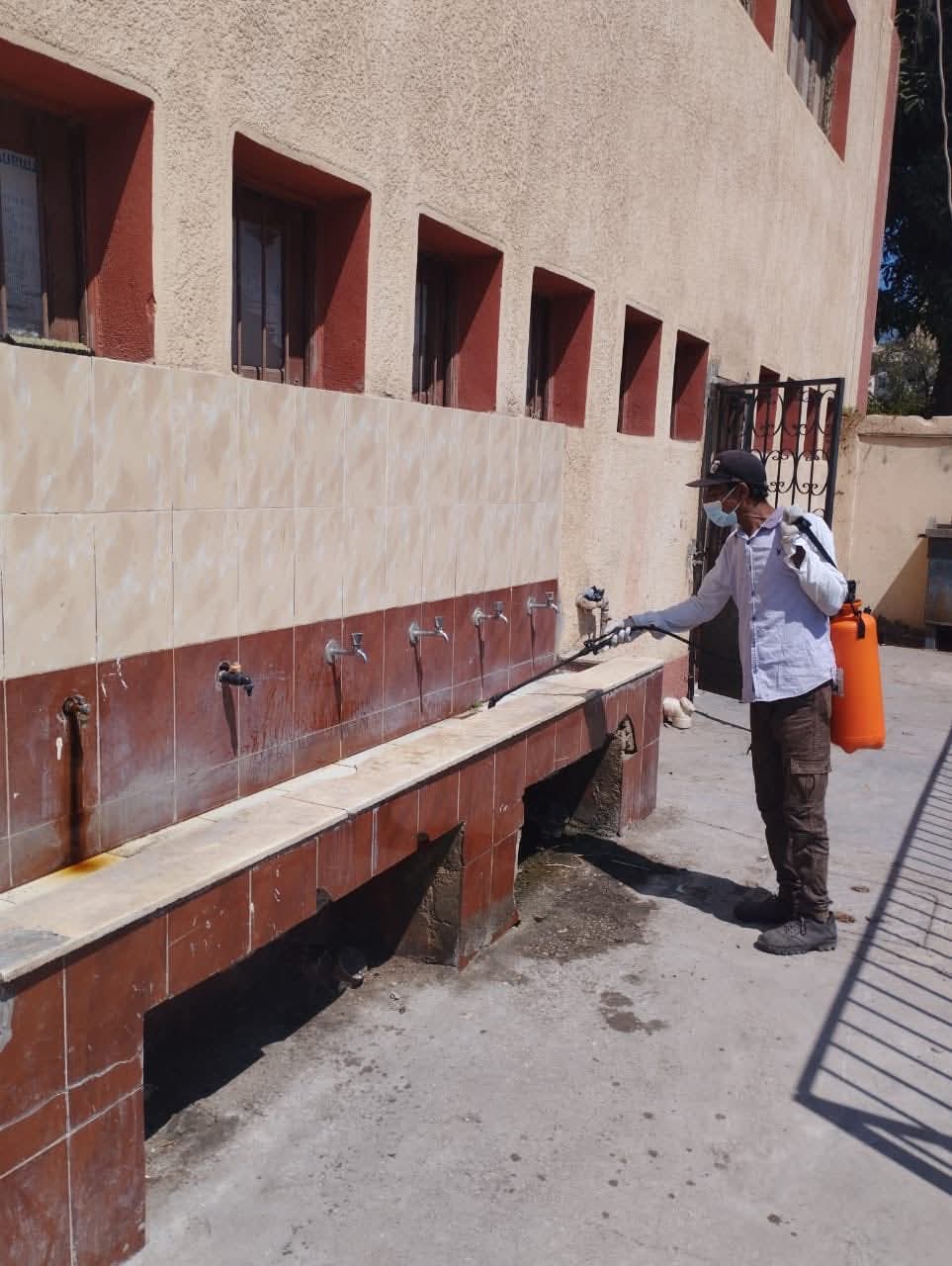 حيث تم الدفع بعربات التعقيم والتطهير المتحركة وأطقم التطهير المحمولة للقيام بالأعمال الوقائية لكافة الفصول والممرات والحوائط من خلال الأطقم الفنية التي تنفذ كافة المهام الموكلة إليها .