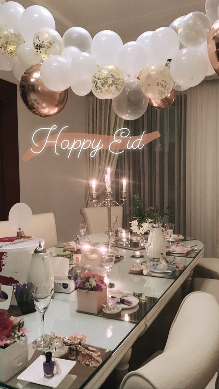 البالونات تعتبر من العناصر الاقتصادية والممتعة التي يمكن استخدامها لتزيين المنزل في عيد الفطر، ويمكن اختيار ألوان البالونات التي تتناسب مع ديكور المنزل وتوزيعها في غرفة المعيشة، لزيادة الأجواء الاحتفالية، يمكن تشكيل أقواس أو مجموعات من البالونات بألوان معدنية كالذهبي والفضي، إضافة إلى اختيار بالونات على شكل هلال ونجمة.