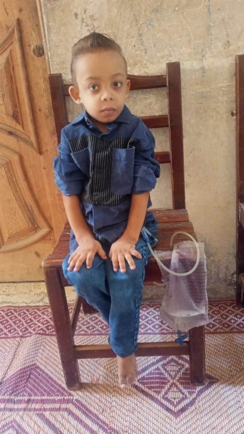 يعاني الطفل أحمد محمد حسن من محافظة البحيرة من فشل كلوي مزمن، أدى إلى تدهور حالته الصحية بشكل كبير، وحال دون تمكنه من الخضوع لجلسات الغسيل الكلوي حتى الآن بسبب ضعف الأوردة.