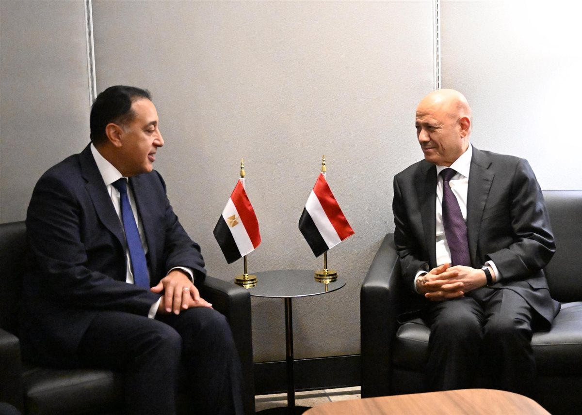 التقى الدكتور مصطفى مدبولي، رئيس مجلس الوزراء، اليوم السيد رشاد العليمي، رئيس مجلس القيادة الرئاسي اليمني، وذلك بحضور السفير أسامة عبدالخالق، مندوب مصر الدائم لدى الأمم المتحدة في نيويورك، وذلك على هامش حضوره أعمال الشق رفيع المستوى للدورة الثمانين من اجتماعات الجمعية العامة للأمم المتحدة نيابة عن الرئيس عبد الفتاح السيسي، رئيس الجمهورية.