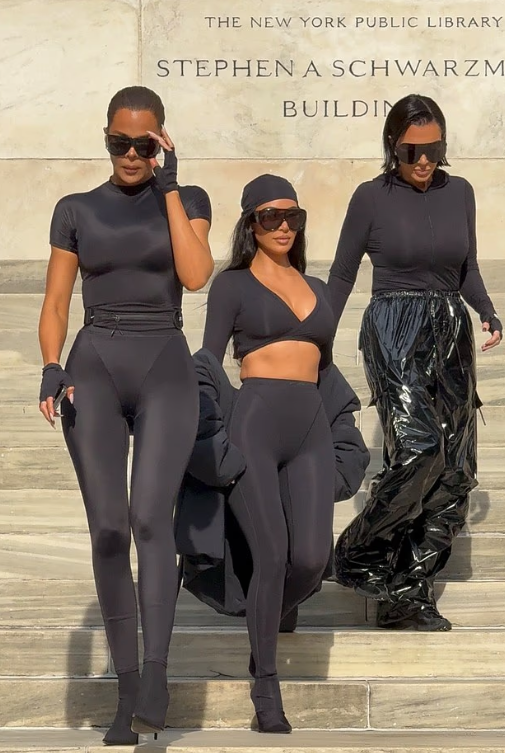 ارتدت كيم، 44 عاما وكلوي، 41 عاما، إطلالات رياضية سوداء ضيقة أبرزت رشاقتهما أما كريس، 69 عاما، فاختارت هودي أسود مع سروال لاتكس فضفاض لتظهر وكأنها “كيم أخرى”.