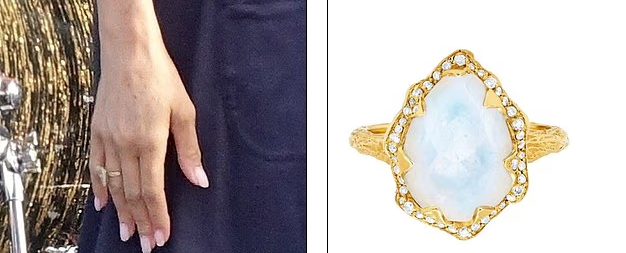الخاتم الذي ظهرت به دوقة ساسكس يعتقد أنه خاتم Queen من حجر القمر من علامة Logan Hollowell بقيمة 3185 جنيها إسترليني