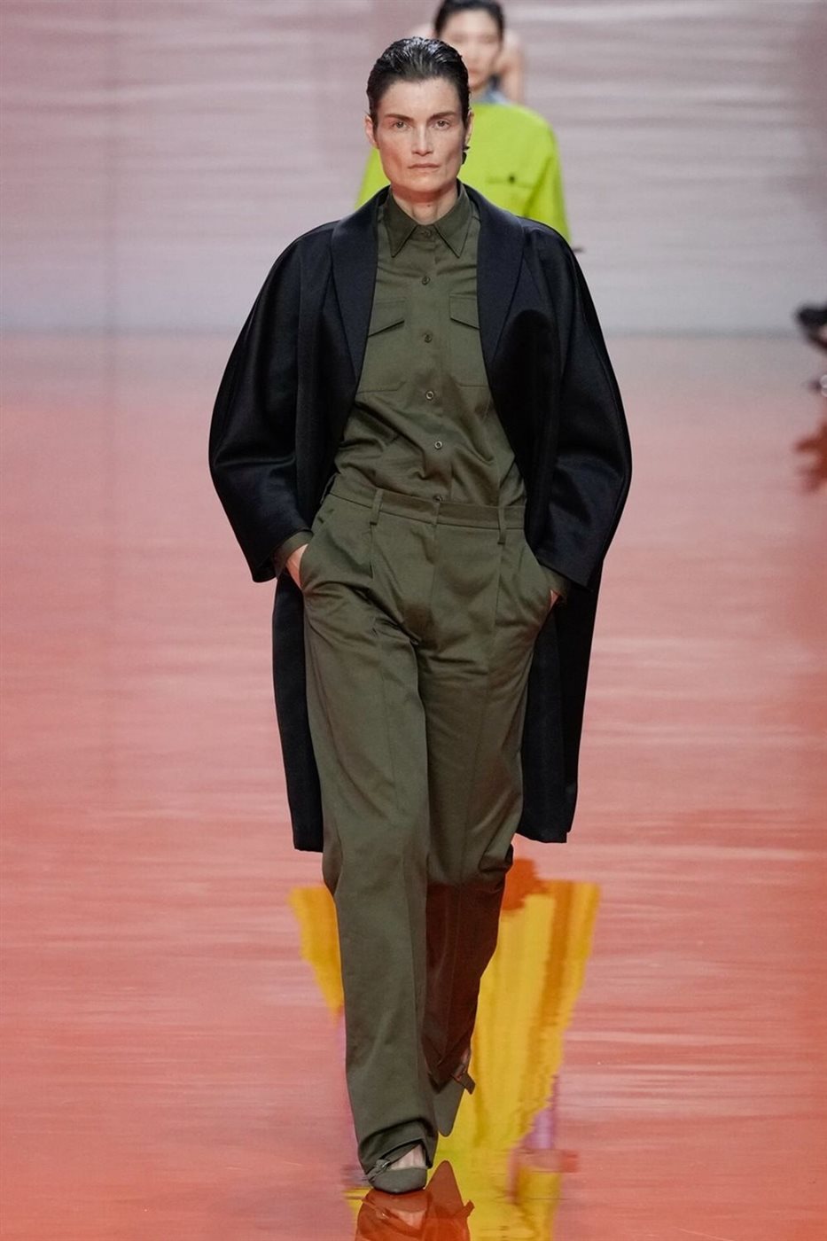 وجاءت مُزينة بأشرطة أنيقة. بينما صُممت الفساتين ذات الياقات المرصعة بالجواهر بسهولة خالفت طابعها الرسمي الأصيل، فيما خَففت من حدته الملابس الخارجية، وأوحى هذا المزيج برفض التسلسلات الهرمية الثابتة لصالح الانسيابية والتجريب.