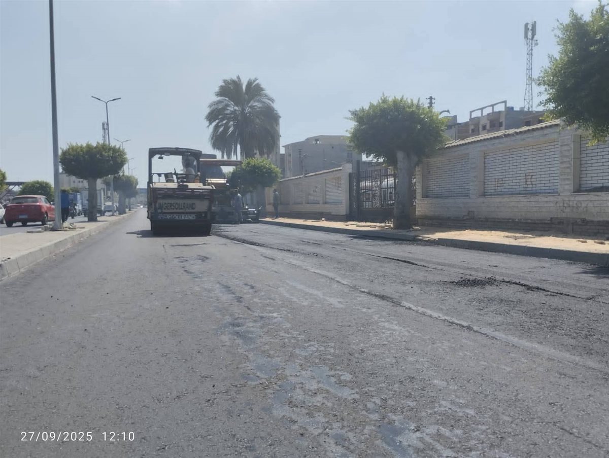 وفي هذا السياق، شدد المحافظ على أهمية تمهيد مدخل الكوبري المتاخم للطريق، بما يساهم في تحقيق السيولة المرورية وتخفيف الضغط عن المناطق المجاورة، كما وجه بدفع المزيد من المعدات والآليات اللازمة لعمليات الكنس ورفع المخلفات على جانبي الطريق، مؤكداً أن تحسين المظهر العام للطريق لا يقل أهمية عن إنجاز أعمال الرصف نفسها.