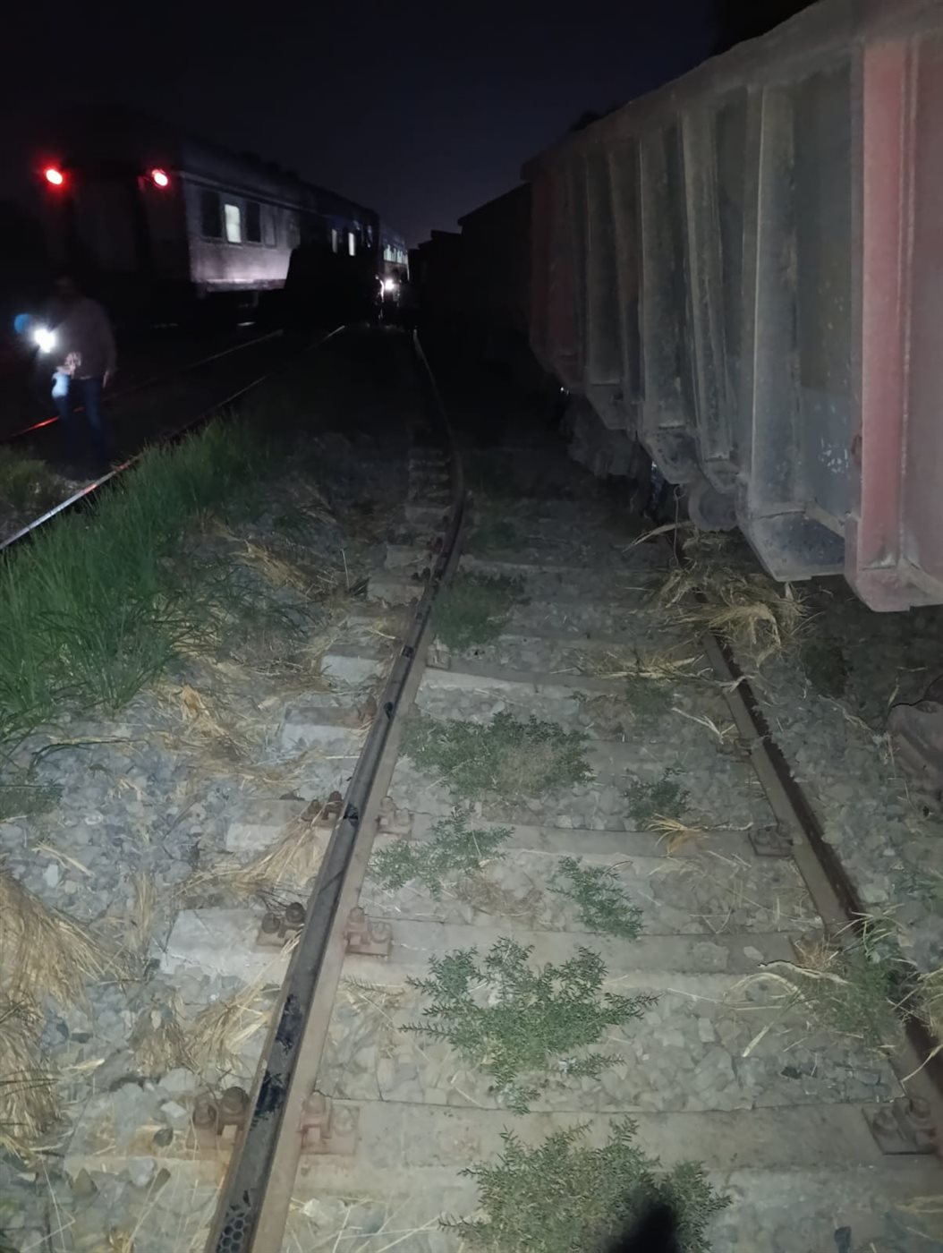 تفاصيل خروج 7 عربات بضائع عن القضبان ببني سويف والتحفظ على السائق ومساعده