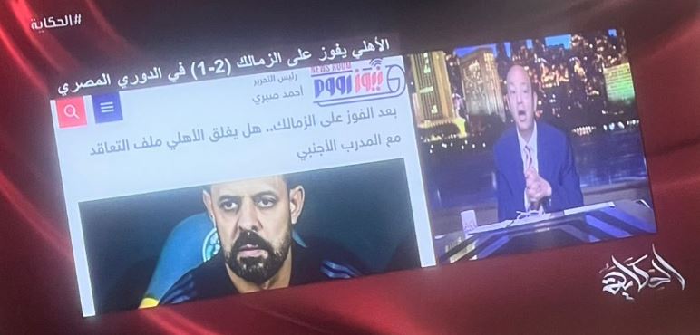 استشهد الإعلامي عمرو أديب بالتقرير المنشور على موقع نيوز رووم، والذي تناول فيه مستقبل الجهاز الفني للنادي الأهلي عقب الفوز المثير على الزمالك في القمة 131 بالدوري الممتاز. وخلال برنامجه "الحكاية"، عرض أديب صورة للتقرير على الشاشة.