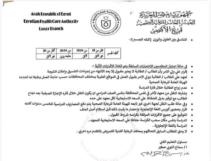 الرعاية الصحية بالأقصر تعلن جاهزية معهد الضبعية للتمريض لفتح باب التقديم للعام