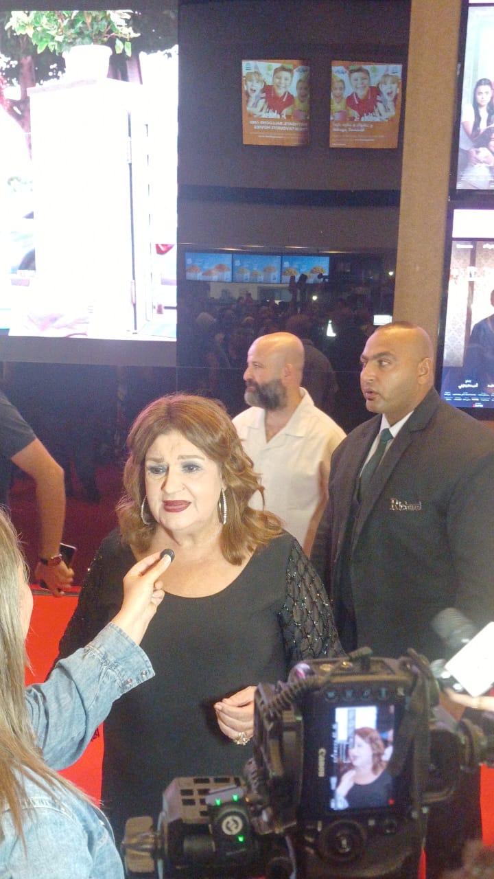 وظهرت ميمي جمال بإطلالة أنيقة، واستقبلها الجمهور بحفاوة كبيرة، خاصة أنها بطلة من أبطال الفيلم إلى جانب نخبة من النجوم، حيث تعود من خلاله إلى شاشة السينما في عمل اجتماعي كوميدي يراهن على جذب مختلف الفئات العمرية.