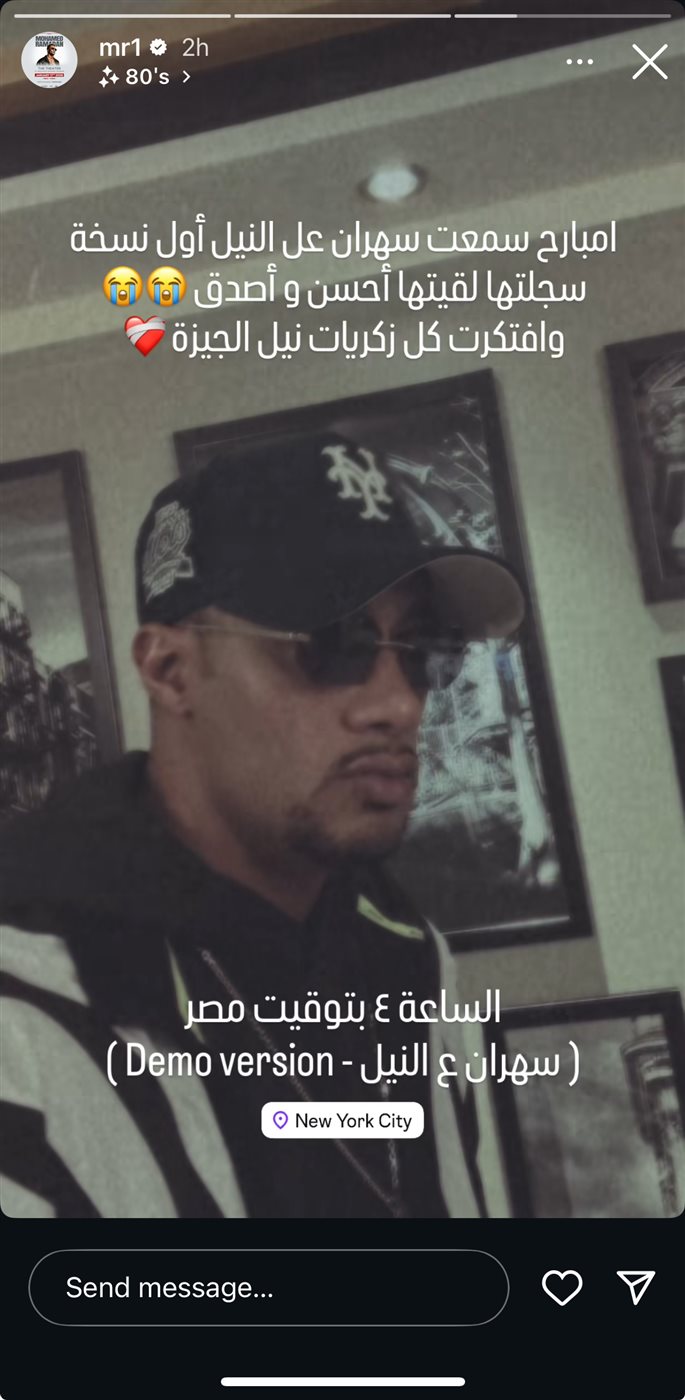 وكتب محمد رمضان عبر خاصية الاستوري بموقع تبادل الصور والفيديوهات إنستجرام: امبارح سمعت على النيل أول نسخة سجلتها لقتها أحسن وأصدق، وافتكرت كل ذكريات نيل الجيزة.