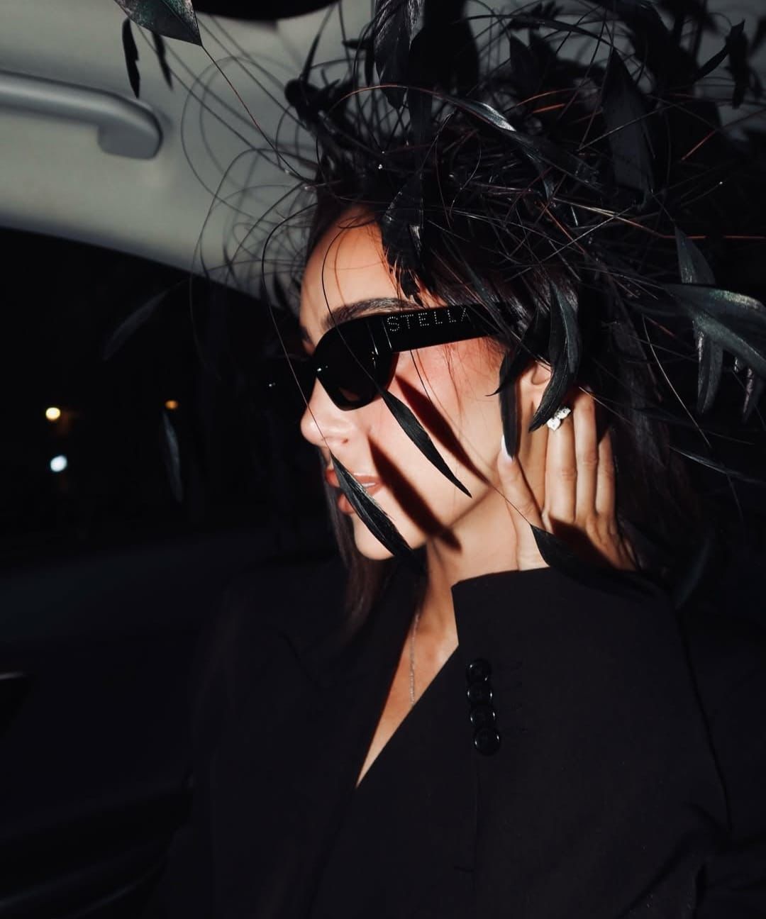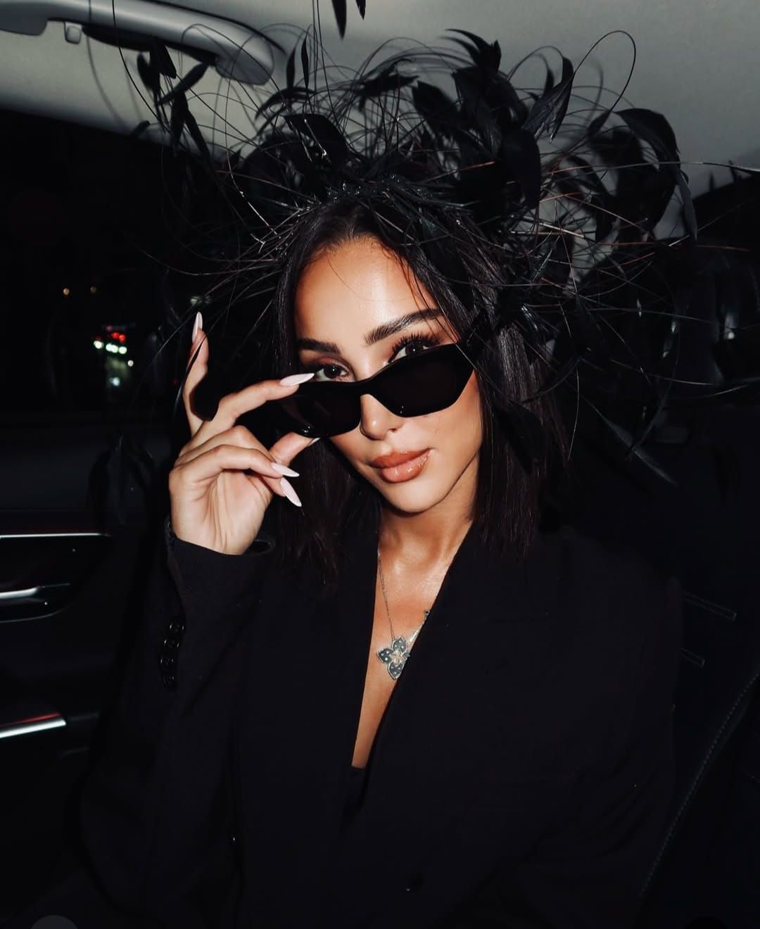 وخطفت بسمة بوسيل الأنظار بإطلالتها الأنيقة حيث ارتدت بدلة سوداء كلاسيكية عكست حضورا قويا ولمسة من الفخامة، ونسقتها مع نظارة شمسية سوداء كبيرة منحتها مظهرا غامضا وجريئا، وزادت الإطلالة تميزا بإكسسوار رأس فاخر يزينه الريش الأسود، في لمسة درامية توحي بأجواء عروض الأزياء الراقية، أما القلادة البسيطة فكانت كافية لتضيف لمسة أنثوية رقيقة، في حين جاء المكياج البرونزي البراق وتسريحة الشعر المنسدلة ليكملا المظهر بكامل الأناقة والثقة.