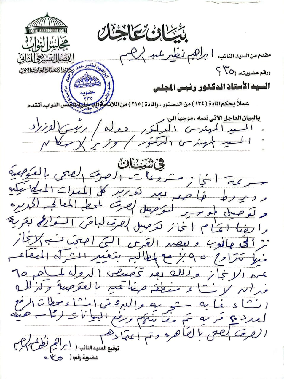 كما شدد النائب على ضرورة محاسبة الشركة المتقاعسة عن استكمال المشروع واستبدالها بشركة أخرى أكثر التزامًا وكفاءة، مؤكدًا أن استمرار التعثر يهدد بخسارة المكاسب التنموية التي كان من المفترض تحقيقها بعد تخصيص الدولة لمساحة 65 فدانًا لإقامة مدينة صناعية بمدينة القوصية، إلى جانب إنشاء غابة شجرية للاستفادة من الأخشاب الناتجة عن عمليات المعالجة.