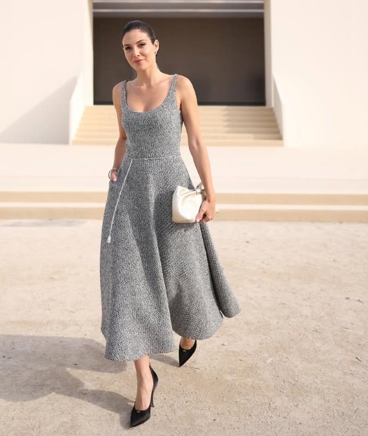 وتألّقت الممثلة اللبنانية رزان جمال بفستان رمادي مخطّط بالأبيض، نسّقته مع حذاء كلاسيكي أسود بكعب عالٍ، ومكياج ناعم، وتسريحة ذيل الحصان المنخفض المربوط بأقسام عدّة والمزيّن بشرائط سوداء. وقد شاركت سفيرة الدار في الشرق الأوسط مجموعة صور وفيديوهات من أجواء العرض عبر صفحتها الرسمية على إنستجلفت النجم الأمريكي
